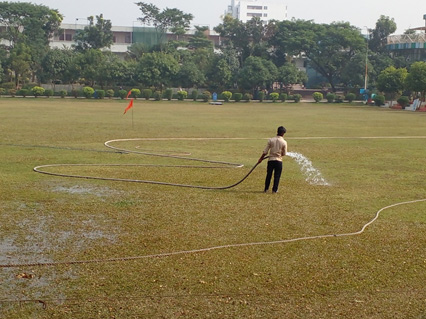 Considering the above-mentioned points, Daffodil International University has already installed and implemented rainwater harvesting plant at its green campus situated at Birulia, Savar, Dhaka as a sustainable water management practice. The capacity of rainwater harvesting tank in the Academic Building-4 is 3,01,000.00 US gallons. There are 33 nos. rainwater pipes in total which pass water directly from roof top to rainwater harvesting tank while raining. At present, the water is being mainly used for watering gardens, washing cars, swimming pool, and washing floors etc. However, DIU has planned to utilize the rainwater harvesting tank as a fire hydrants system to be used by firefighting team during any fire accident.