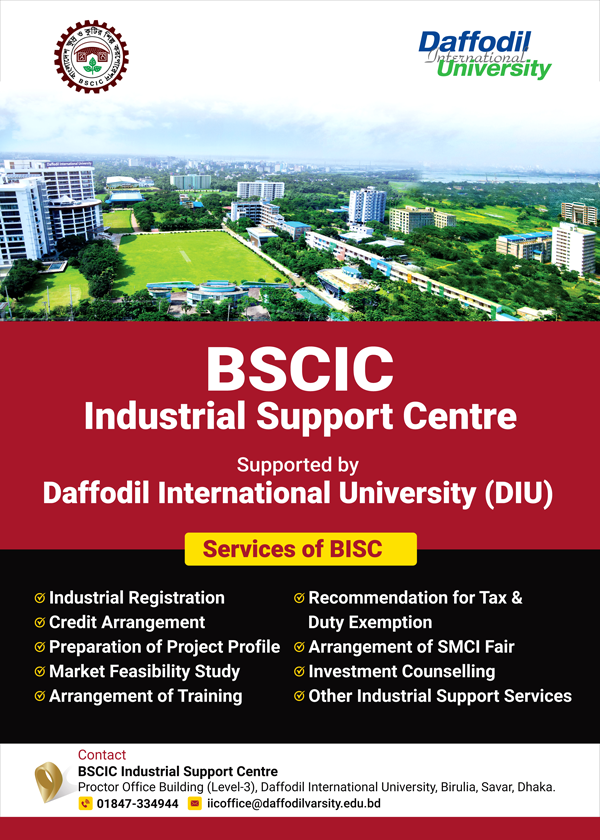 The responsibility of BSCIC is to address all sorts of existing and potential new entrepreneurs under the purview of MSME which is quite fair and logical. But the fact is that a large number of educated youths are now highly interested and trying hard to build their career as entrepreneur and this number is increasing rapidly day by day. In this situation, BSCIC has recently established an Industrial Support Centre (BISC) at DIU Campus with the aim to address the interest of DIU students to build their career as entrepreneur which is known as BISC.