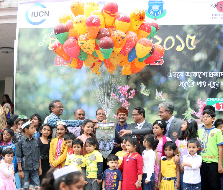 special guests of inauguration ceremony. Presided over by Prof. Dr. Md. Monwar Hossain, Convener, Butterfly Fair Organizing Committee, the function was addressed by Prof. Abdul Jobbar Hawlader, Dean, Faculty of Biological Science of Jahangirnagar University. The fair was organized by Zoology Department of Jahangirnagar University and is sponsored by Daffodil International University. The fair was supported by International Union for Conservation of Nature (IUCN) and Prokrity o Jibon Foundation. In the Butterfly fair, International Union for Conservation of Nature (IUCN) was awarded for its outstanding contribution for conservation of animal diversity and Ibrahim Khalil Al Haider –a student of Chittagong University was awarded as ‘Young Butterfly Enthusiast’. Beside this a Butterfly Park was inaugurated at the campus premises where exists live butterfly, butterfly friendly trees and reproductive zone along with garden. Daylong Fair included Drawing Competition for Children, Photography Exhibition, Live Butterfly Display, Inauguration of butterfly Park & Research Centre (BPRC), Butterfly-like kite flying for Children, Butterfly Race, A barwary Debate Competition on “Butterfly and Climate Chance”, Documentary on “Butterfly and its Habit and Prize giving ceremony.