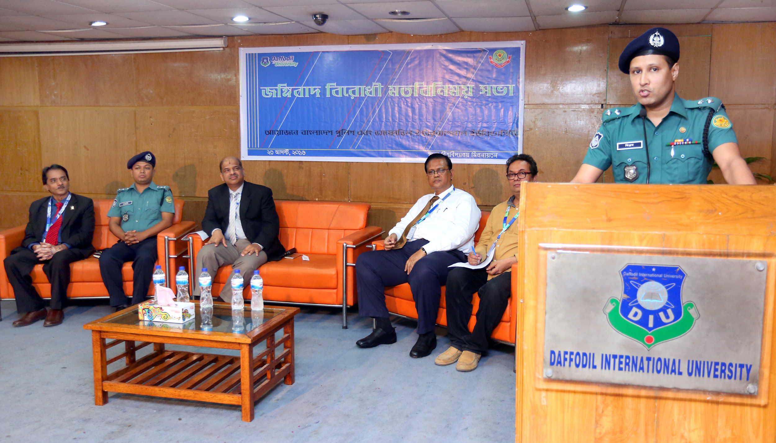 Bangladesh Police and Daffodil International University jointly organized a view exchange program on ‘Anti-Militancy campaign’ today on August 23, 2016 at DIU Auditorium. Professor Dr. Yousuf Mahabubul Islam, Vice Chancellor, Daffodil International University presided over the program while Mr. Biplab Kumar Sarker, Deputy Commissioner, Dhaka Metropolitan Police (Tejgaon Division) was the keynote speaker of the program. Mr. Hamidul Haque Khan, Treasurer, Prof. Dr. Engineer A K M Fazalul Haque, Registrar, Mohammed Emran Hossain,