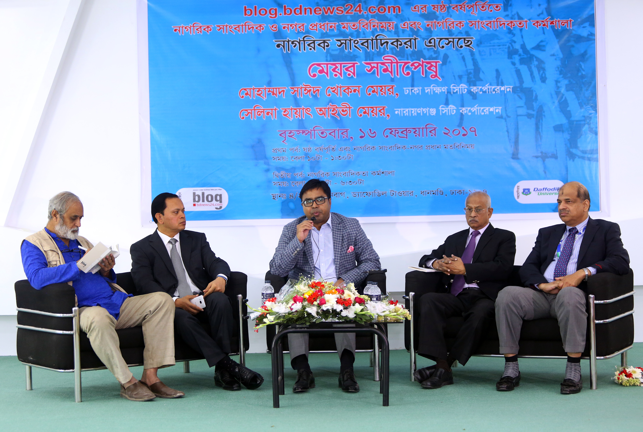 A daylong discussion and workshop on “Citizen Journalism” was jointly organized by bdnews24.com and the Department of Journalism & Mass Communication of DIU on February 16, 2017 at DIU auditorium to mark the sixth anniversary of bdnews24.com. Mr. Mohammad Sayeed Khokhon, Mayor, Dhaka South City Corporation (DSCC), Professor Dr. M. Golam Rahman, Chief Information Commissioner of Bangladesh, Mr. Md. Sabur Khan, Chairman, Board of Trustees and Professor Dr. Yousuf Mahbubul Islam, Vice Chancellor of Daffodil International University, Poet Muhammad Nurul Huda, Editor, arts, bdnews24.com, Mr. Selim Ahmed, Head, Department of JMC, were present as the honorable guests in the program. Mr. Robaet Ferdous, Associate Professor and Mr. Fahmidul Haque, Associate Professor of Department of Mass Communication and Journalism of University of Dhaka were present as the keynote speakers of the workshop on ‘Citizen Journalism’.