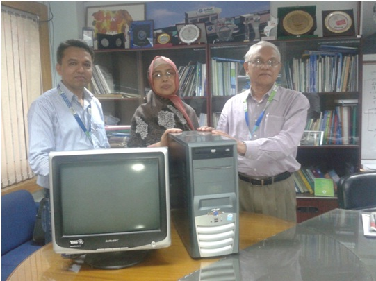 Professor Dr. M. Lutfar Rahman, Honorable Vice Chancellor of Daffodil International University handed over the PC to Mrs. Shamsun Nehar, President of Samannita Jonokallyan Kendra (SJK) on July 21, 2014 at his office.