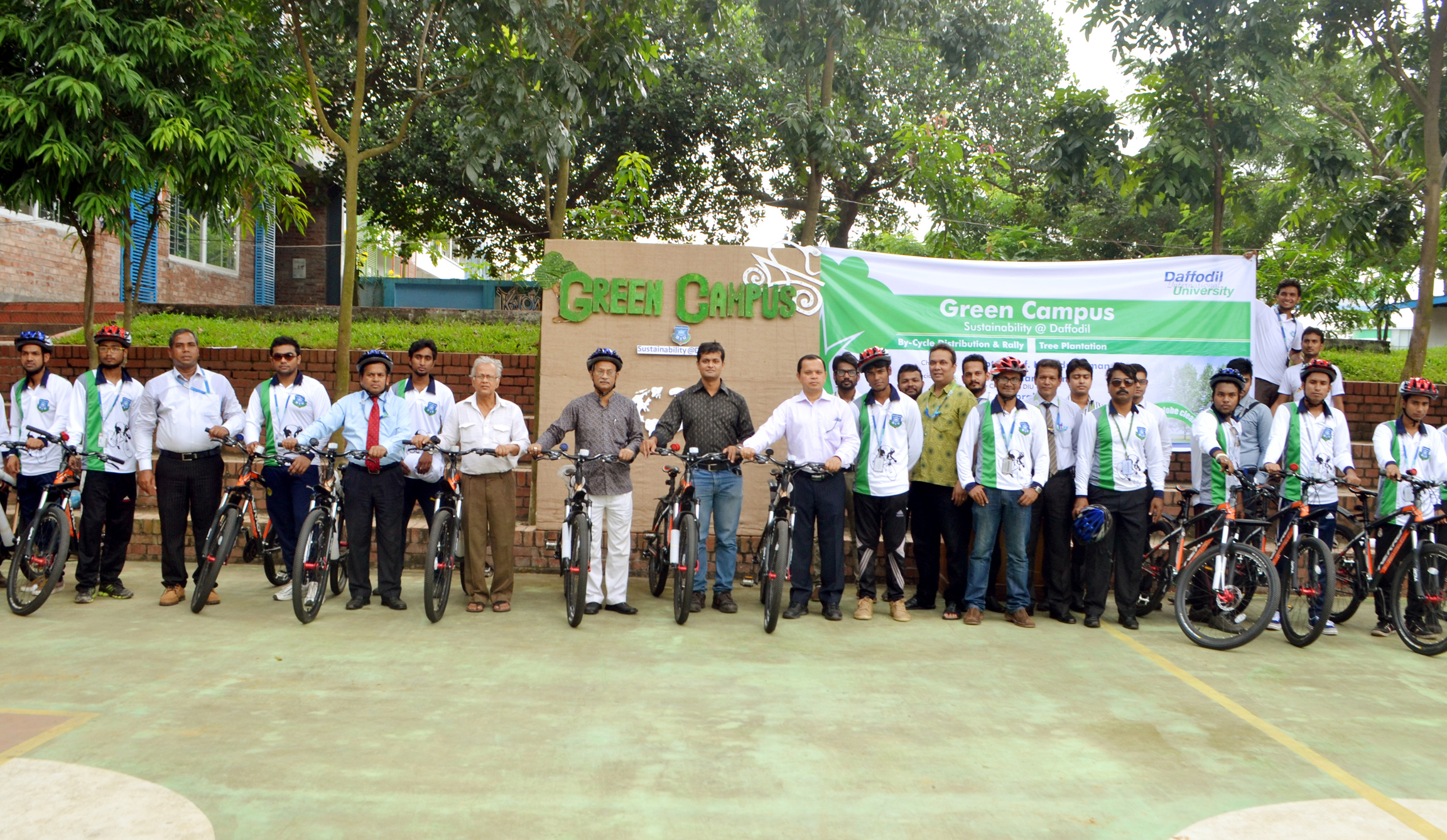 As a sensible and innovative part of Academic Social Responsibility, Daffodil International University (DIU) promotes green campus for ensuring sustainability. In this regard, Daffodil International University has taken a contemporary initiative by celebrating green transport distribution among promising students and arranging Tree Plantation program on 17 October 2015 at Permanent Campus to make the campus greener.