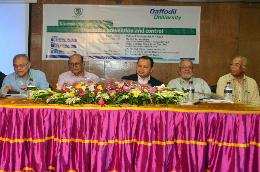 Daffodil International University (DIU) and Sir William Beveridge Foundation jointly organized a seminar on “Dementia prevention and control” held on 07 September, 2014 at DIU auditorium. National Professor Dr. M R Khan was present at the seminar as chief guest. Mr. Md. Sabur Khan, Chairman, Board of Trustees (BoT) of Daffodil International University was present in the seminar as guest of honor. The