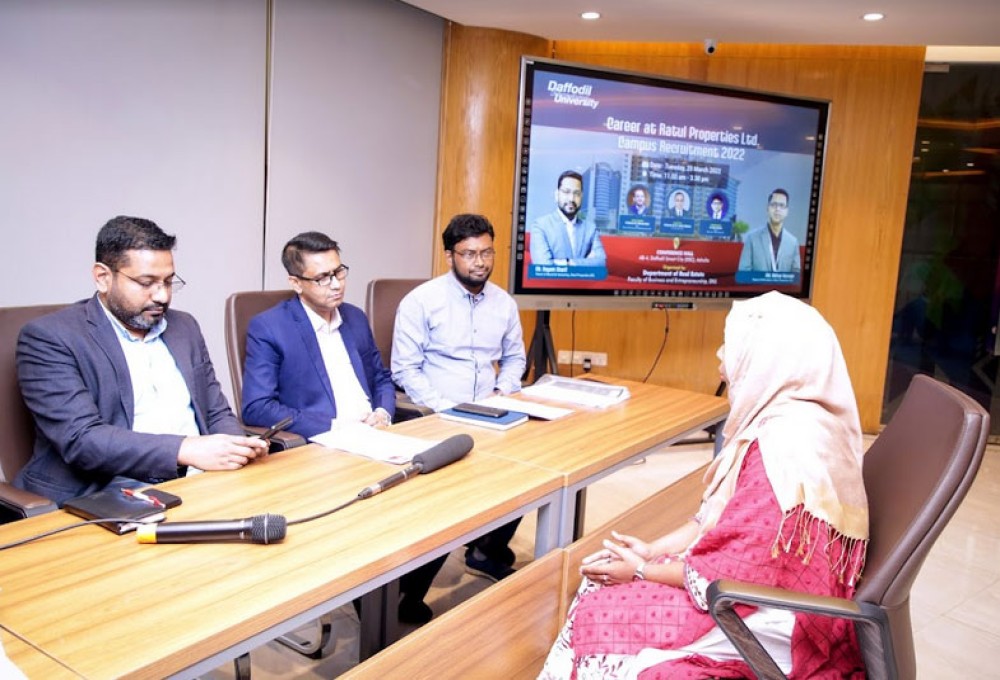 Department of Real Estate of Daffodil International University (DIU) and Ratul Properties Limited, a concern of Rupayan Group have jointly organized a #Campus_Recruitment_Program on 29 March 2022 at Daffodil Smart City in Ashulia, Dhaka.
