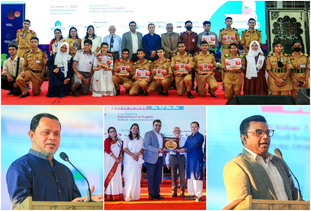 The Final Round and the Prize Giving Ceremony of the English Olympiad Bangladesh 2022 held today (October 07) at Daffodil Smart City at Ashulia, Dhaka organized by the Department of English of Daffodil International University. English Olympiad Bangladesh 2022 is organized by the department for the third time with the motto “Show your English talents, Go for greater challenge” to make our youth as competent global citizens to take lead in international activities.