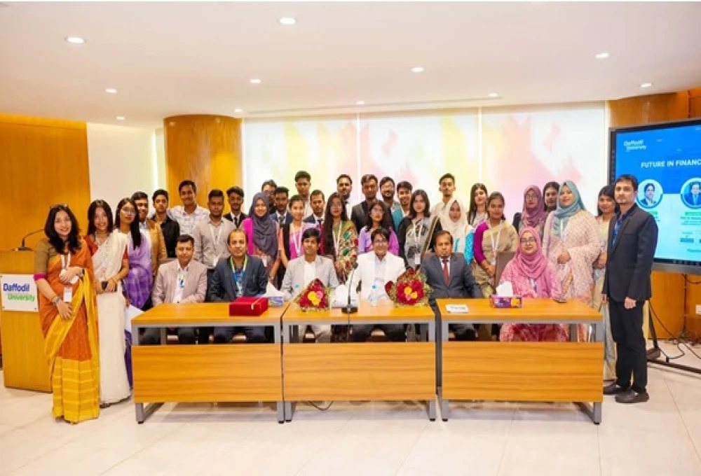 The Department of Finance & Banking-DIU successfully hosted a seminar on "𝗙𝘂𝘁𝘂𝗿𝗲 𝗶𝗻 𝗙𝗶𝗻𝗮𝗻𝗰𝗲 𝗖𝗮𝗿𝗲𝗲𝗿: 𝗣𝗿𝗼𝘀𝗽𝗲𝗰𝘁𝘀 & 𝗦𝗸𝗶𝗹𝗹𝘀," That is designed to guide newly admitted students on career opportunities and essential skills in the financial sector with a particular emphasis on banking and related industries.