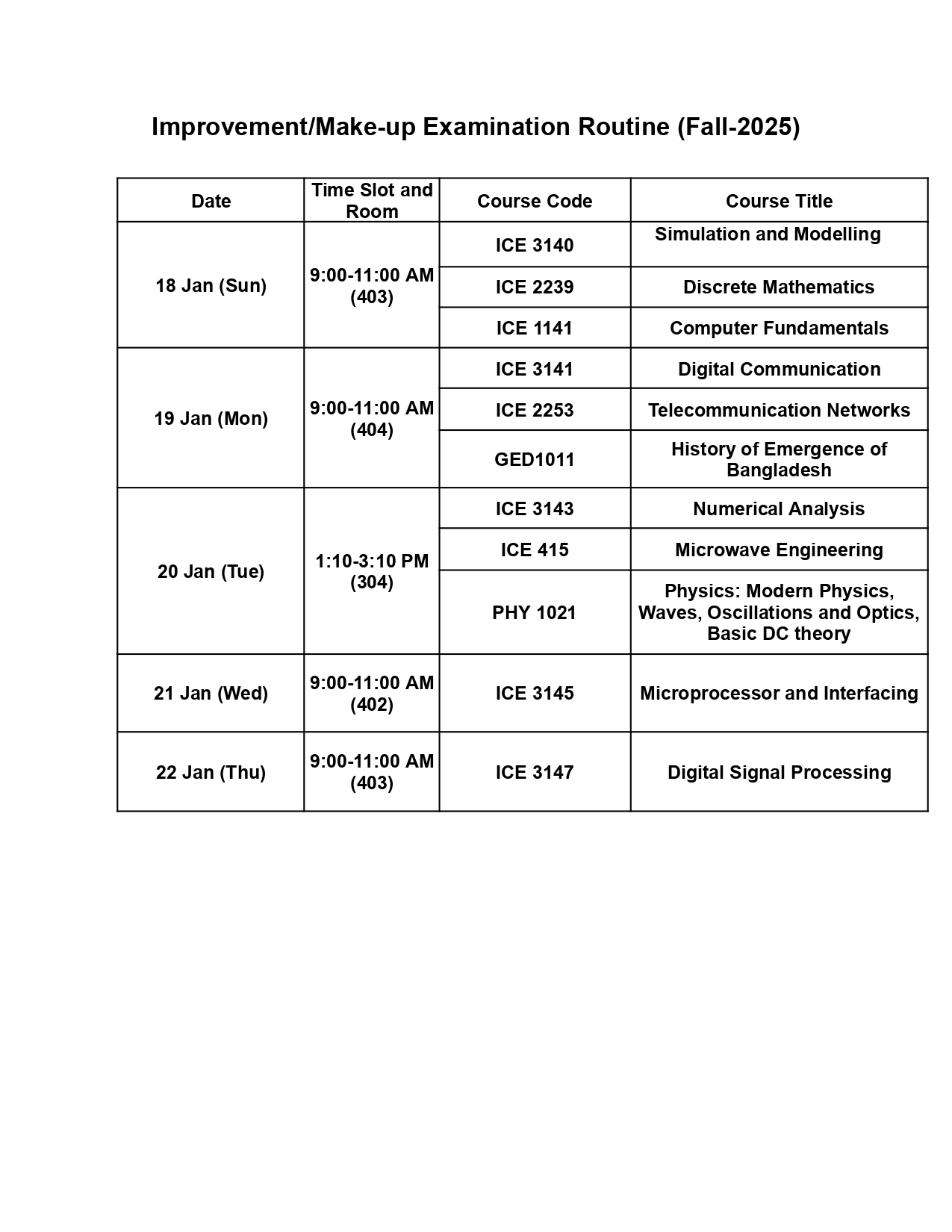 IMPROVEMENT/MAKE-UP EXAMINATION ROUTINE (FALL 2025)