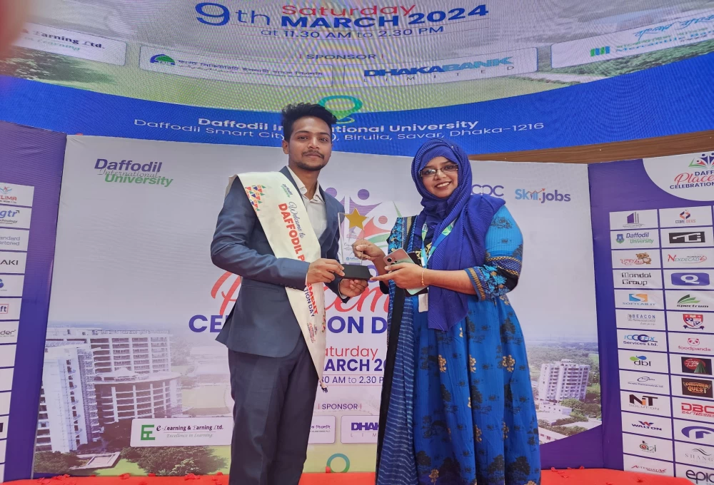 Daffodil International University we celebrate Daffodil Placement Ceremony 2024, where we celebrate one of our graduates Amir's achievement, along with the dedication and hard work of all other graduates who've secured jobs straight out of university.