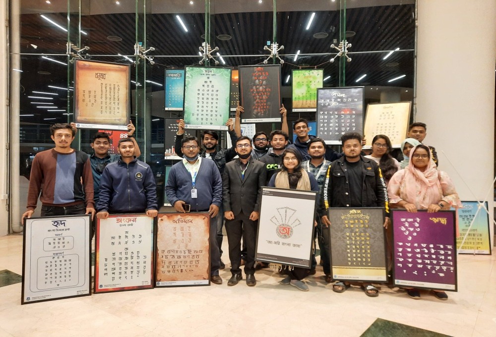 আন্তর্জাতিক মাতৃভাষা দিবস উপলক্ষে Department of Multimedia & Creative Technology , DIU এর ছাত্রছাত্রীদের দ্বারা উদ্ভাবিত বাংলা ফন্টের উপর ভিত্তি করে বাংলা বর্ণমালার প্রদর্শনী