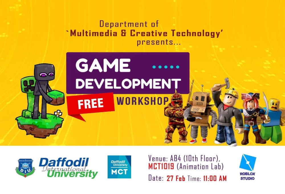 "Calling all aspiring game developers! Join us for a FREE Game Development Workshop, presented by the Department of Multimedia and Creative Technology, Daffodil International University.