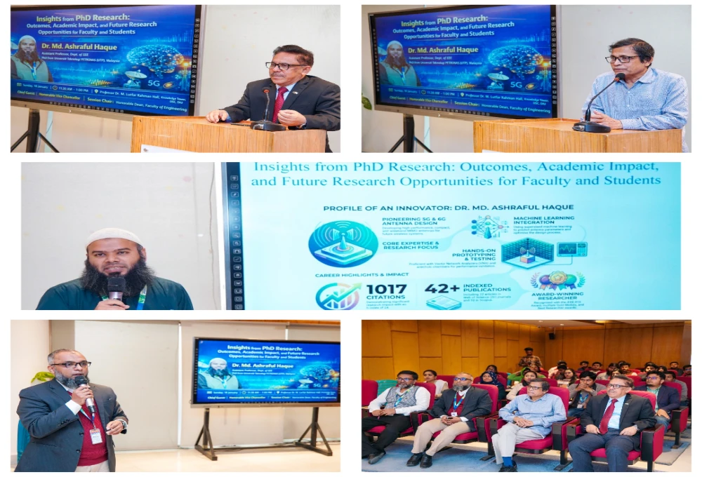 We are delighted to share that the PhD Research Seminar titled “Insights from PhD Research: Outcomes, Academic Impact, and Future Research Opportunities for Faculty and Students” was successfully conducted with active participation from faculty members and students of the Department of Electrical and Electronic Engineering (EEE), Daffodil International University.