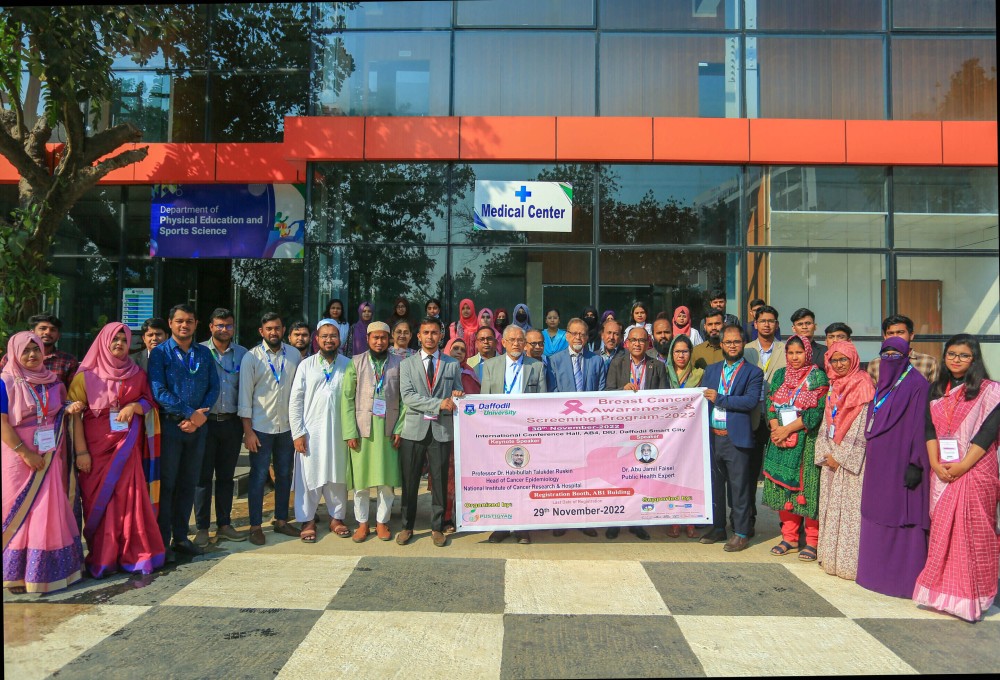 We are pleased to invite you in the awareness building event on “Breast Cancer Awareness & Screening Program” on 30th November 2022 (Wednesday) from 12:30 PM - 03:00 PM, at International Conference Hall, AB4, Daffodil Smart City, Ashulia, Savar, Dhaka 1341.