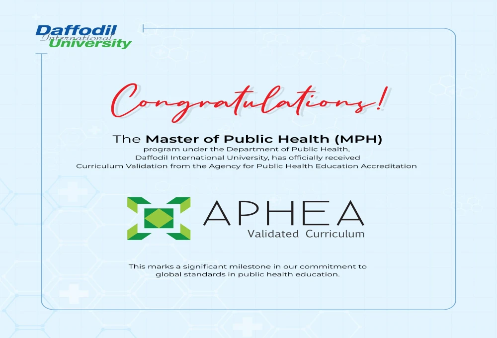 We are delighted to announce that the Master of Public Health (MPH) program at the Department of Public Health has officially received Curriculum Validation from the Agency for Public Health Education Accreditation (APHEA) — an internationally recognized body ensuring excellence in public health education.