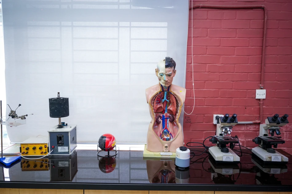 Physiology and Pharmacology Lab utilizes specialized instruments—such as microscopes, Electrocardiograph (ECG/EKG), and spectrophotometer systems—to study biological functions and drug effects. These tools enable precise analysis of cellular interactions and are essential for advancing pharmacological research.