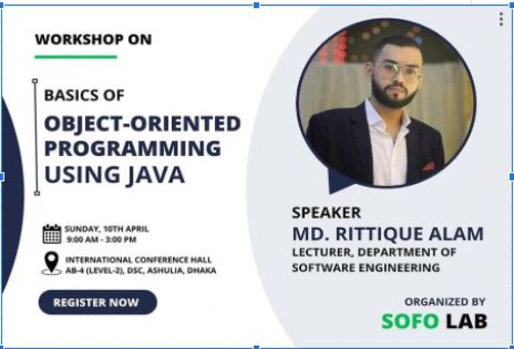JAVA Programming is used considering Object Oriented Programming.In this workshop our respectable faculty member Md. Rittique Alam sir skilled us with basics of JAVA and guides to implement in our code.This session was really great because JAVA is one of the most used programming language in today's world.