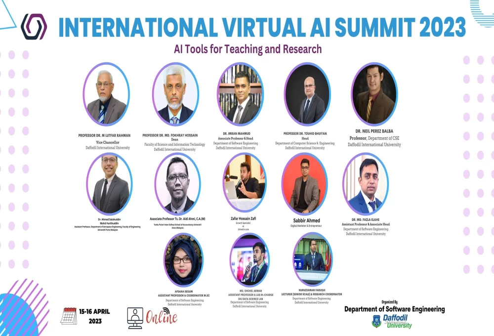 International Virtual AI Summit 2023 on 15th and 16th April, 2023 organized by the Department of Software Engineering, DIU.