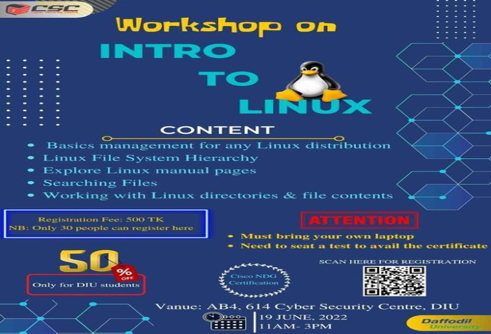 The Cyber Security Centre is going to organize a workshop on Linux. In this introductory course, you will learn about essential Linux commands and understand Linux basic operations.
