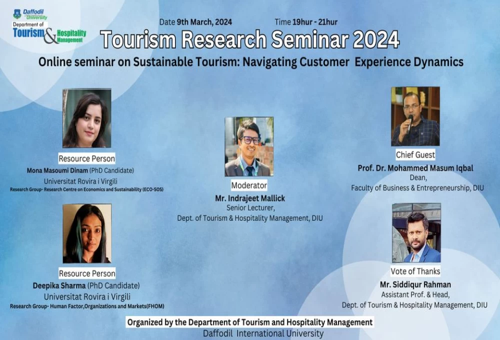 The "Sustainable Tourism: Navigating Customer Experience Dynamics" seminar, held on March 9th, showcased insights from industry professionals Miss Mona Masoumi Dinam and Miss Deepika Sharma. They shared research findings on tourist behavior, emphasizing their impact on sustainable tourism practices.