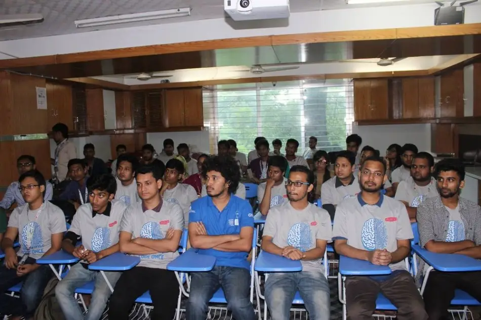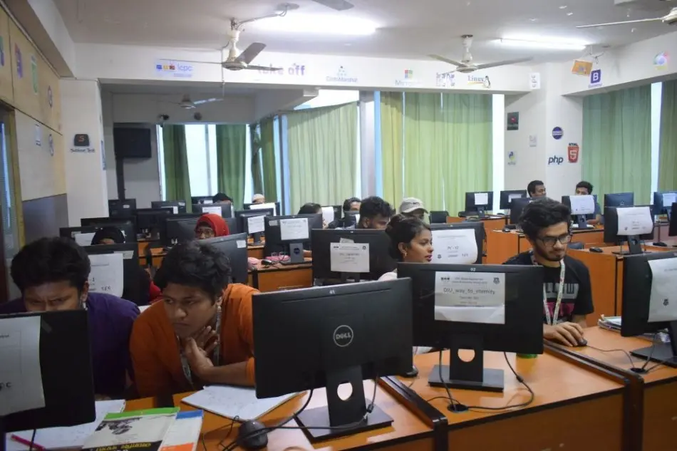 Well-equipped lab room with broadband internet and Wi-Fi facility where students practice programming. Natural Language Programming (NLP) training is also held in this room.