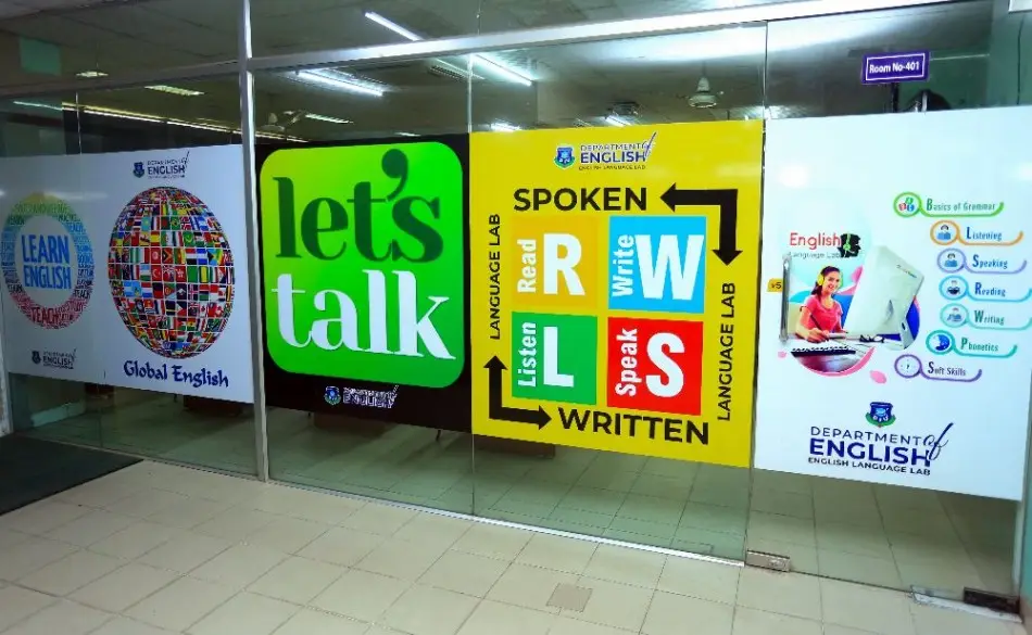 It’s a language lab. In this lab the department takes listening tests, listening and speaking bases