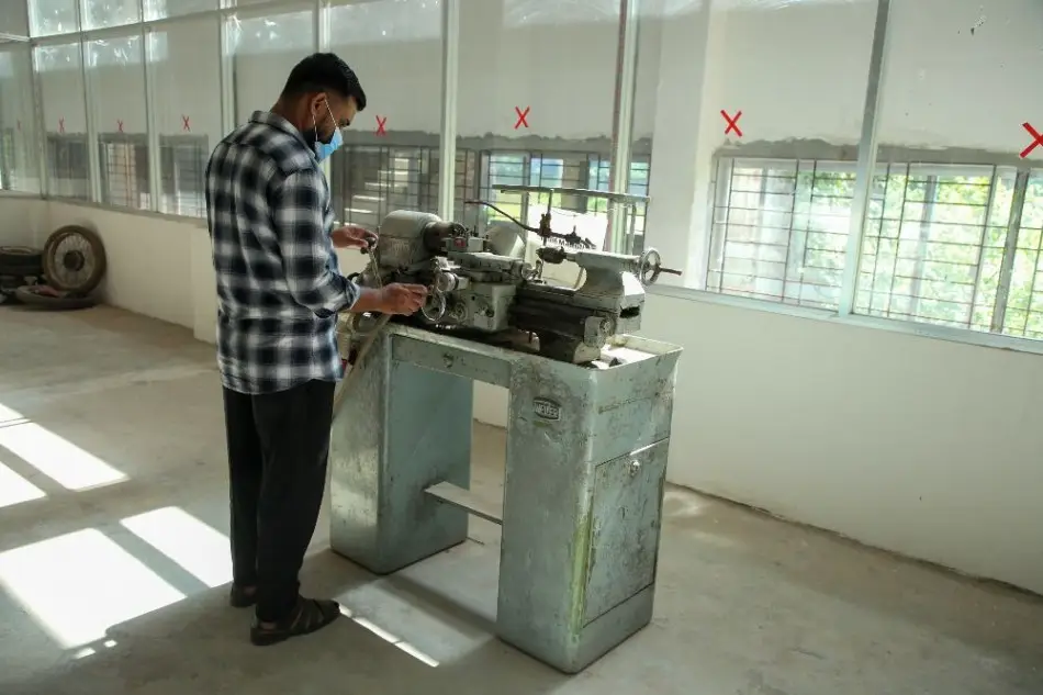 The Mechanical lab in the Department of Textile Engineering offers hands-on manufacturing techniques using cutting edge machines and tools. Major experiments include sand casting, where students learn mold-making and metal casting fundamentals. Experiment on the lathe machine provides lessons on precision turning tasks. Drilling machine exercises focus on hole-making techniques, while the introduction to mechanical hand tools builds foundational skills in tool handling and measurements. Students also work with welding machines to understand joining techniques, and use grinding machines for finishing operations, gaining a comprehensive understanding of fundamental manufacturing processes and equipment. Mechanical Drawing lab provides lessons on a wide range of drawing techniques such as orthographic projection, isometric drawing, oblique drawing, and AutoCAD.